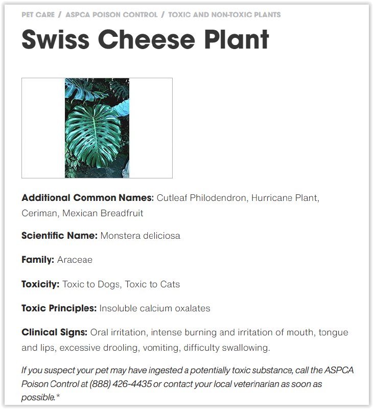 Ну я вот тоже сразу прочитала, написано, что не смертельно, вроде, но токсично. Он у нас просто на передержке и цветы раньше не ел. Он хорошо, бодро, ест, пьет, отека проверяю — нету. Признаков, что ему плохо нету. Но всеравно стращно за него.