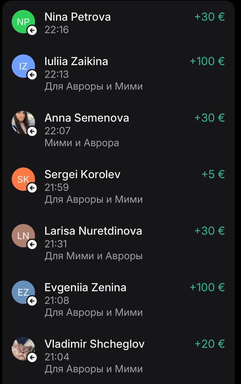 Это все еще чудовищно большая сумма для нас, для меня, для малышки Авроры и Старушки Мими, но я верю, что с силой и помощью вас, добрых и отзывчивых людей, мы справимся!
