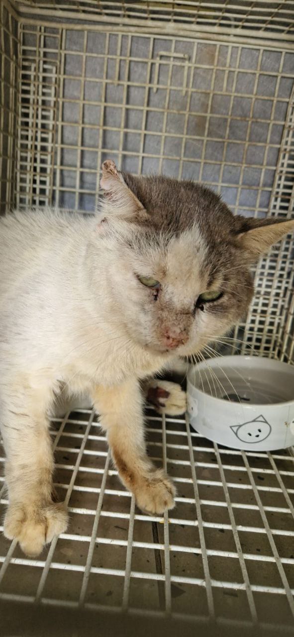 Кота, обнаруженного Кристиной, поймали и доставили в клинику PaphosVets - спасибо волонтёру Наталье, но на следующий день его пришлось усыпить, поскольку его состояние оказалоь слишком тяжёлым. Ренгтен показал, что в кота стреляли, а следы на лапах - задние лапы и нижняя часть позвоночника в целом остались парализованы - что с этого момента прошло около недели. К сожалению, у кота отказывали органы и врачи ничем уже не смогли ему помочь, кроме как уйти без боли. Бедный мальчик неделю был на улице в этом состоянии...
