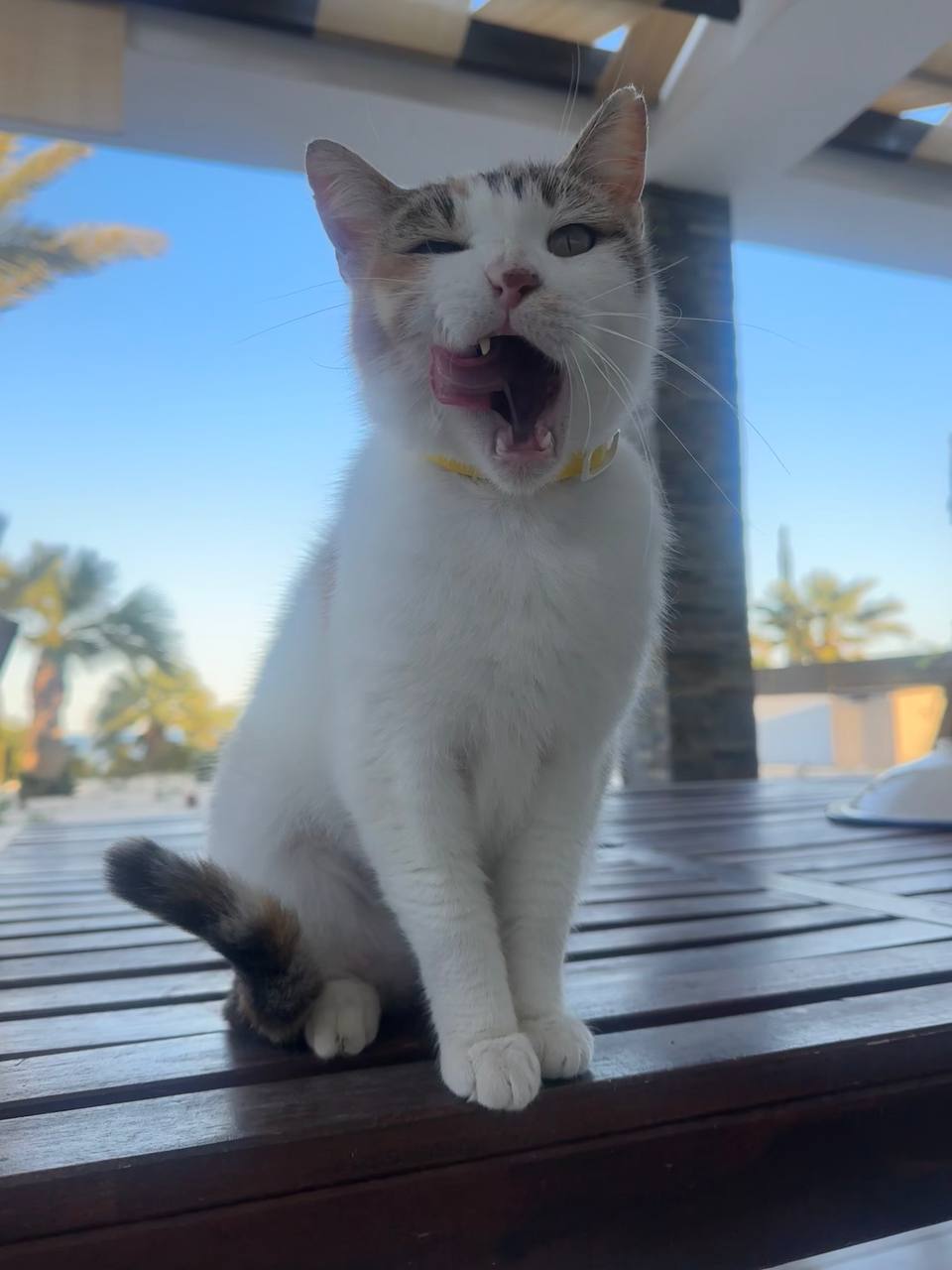 Очень милая, дружелюбная и чистая трёхцветная кошечка была найдена на парковке Lidl в Менеу (Ларнака). Я живу в этом районе более 2,5 лет, и за всё это время на этой парковке никогда не видела ни кошек, ни котят. Очевидно, что её туда подбросили — несколько дней она сидела под навесом для тележек.