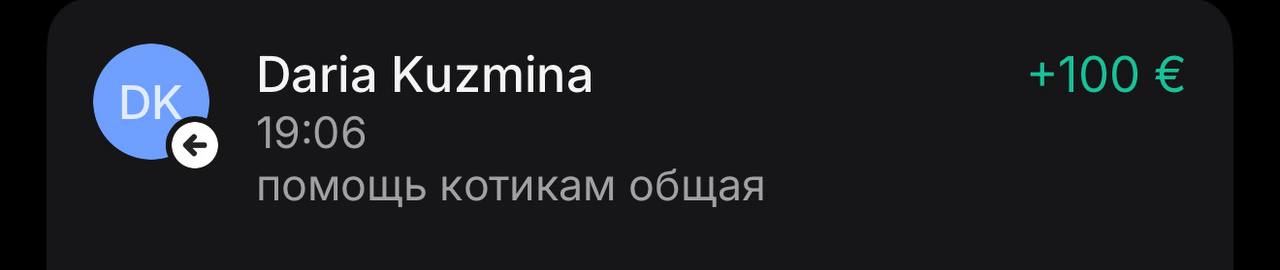 @kris_the_cuteМне приходили средства от Дарьи и Дарьи. Милые, добрые девушки !!!! Спасибо Вам огромнейшее!!!! Эти деньги были очень вовремя!!! Спасибо Вам обеим за доверие и неоценимую помощь♥️♥️♥️)
