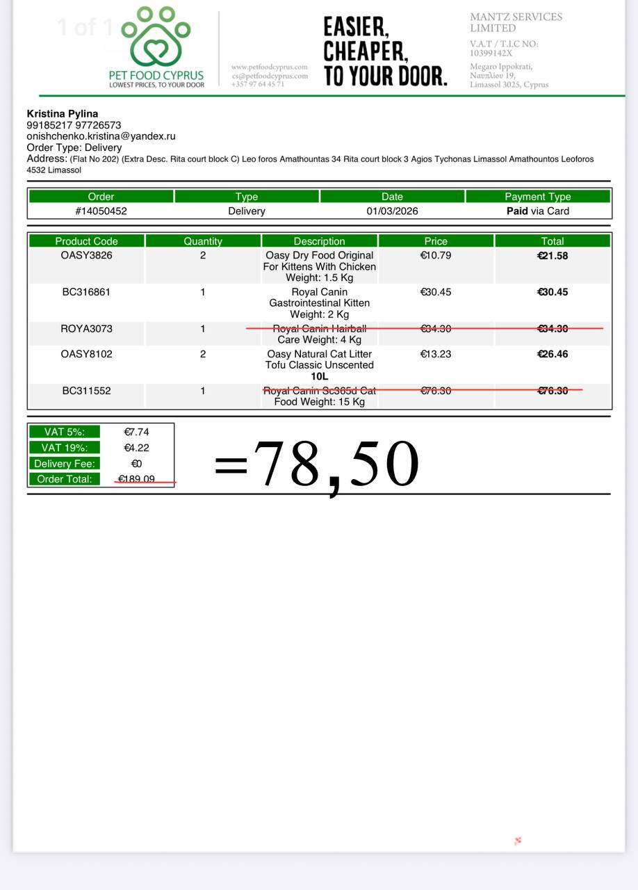 3 чек с петфуд на 78,49: