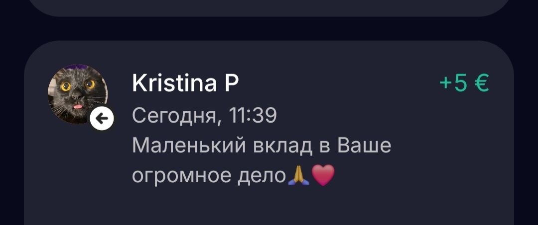 @Kate_about_CyprusКабачок, Виола и другие ребята передают вам приветы и благодарят Кристину за ещё один вклад в наше общее дело! 😍