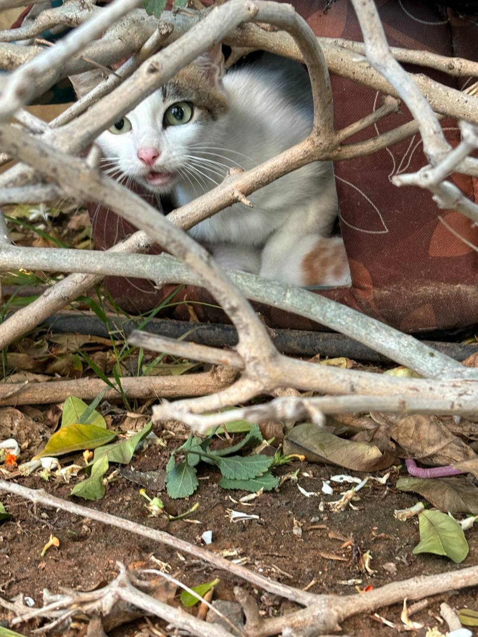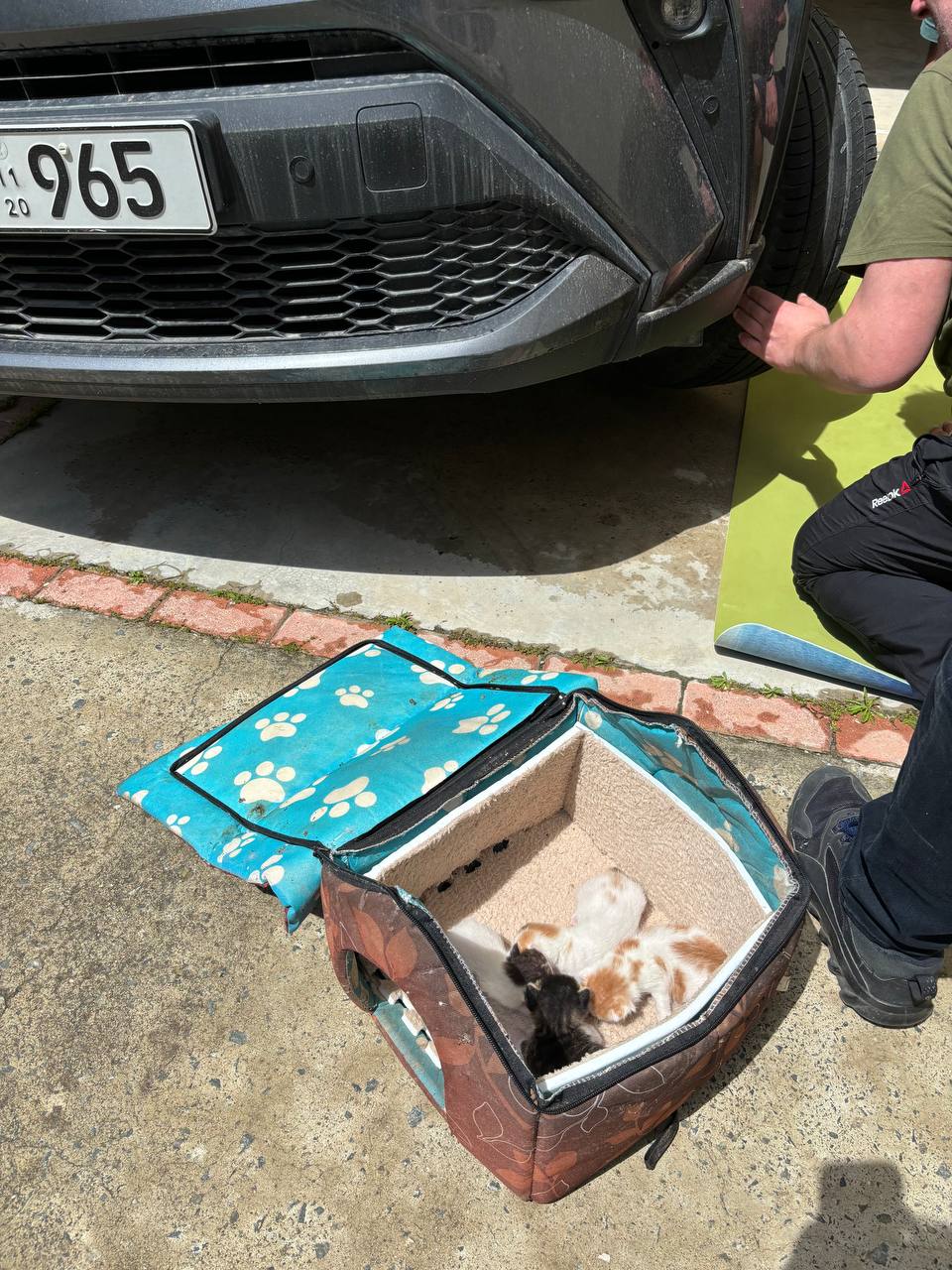 Так вот сразу как их достали, сложили в домик, домик я поставила в кусты. Котята пищали, пока несла их, кошка хотела мне ноги отгрызть:)