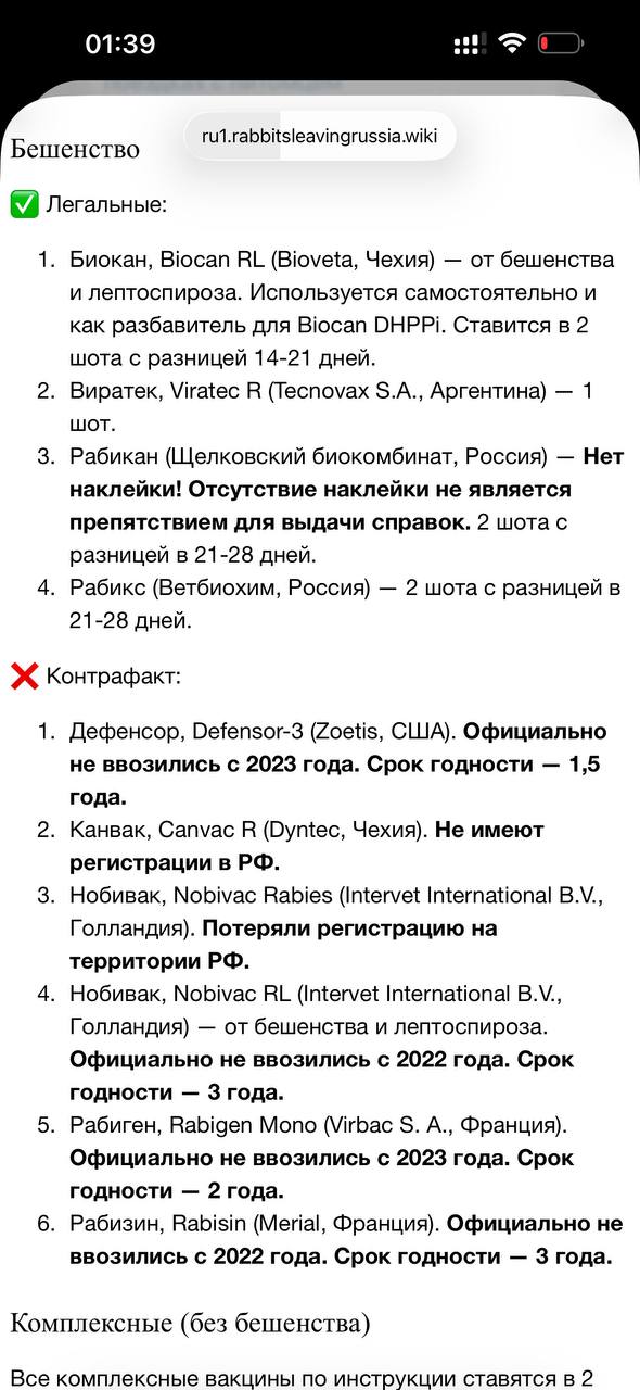 Подскажите пожалуйста какие вакцины от бешенства для собак подойдут если летишь из России? Что-то не открывается сайт с требованиями(