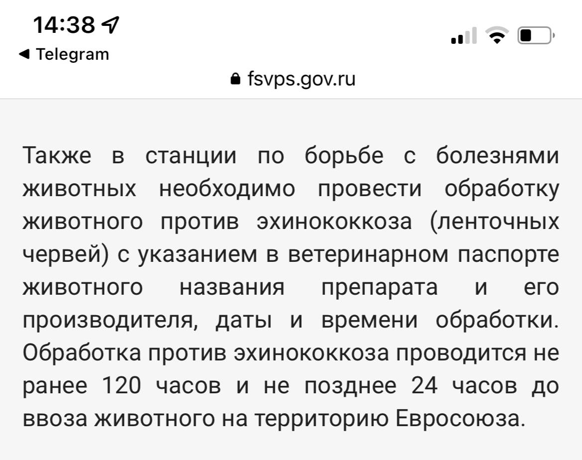 а все предыдущие обработки от паразитов на вашей ответственности и вашего ветеринара, они для выезда не существенны