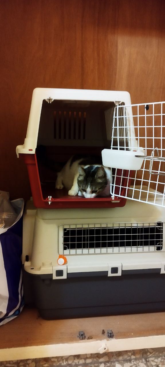 Вторая клетка крупнее. Она для английского коккера. Там идеально двум котам покрупнее моих будет