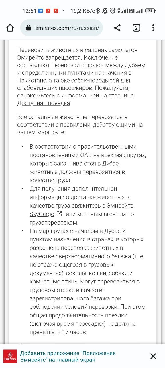 эмирейтс не разрешают никаких собак в салоне