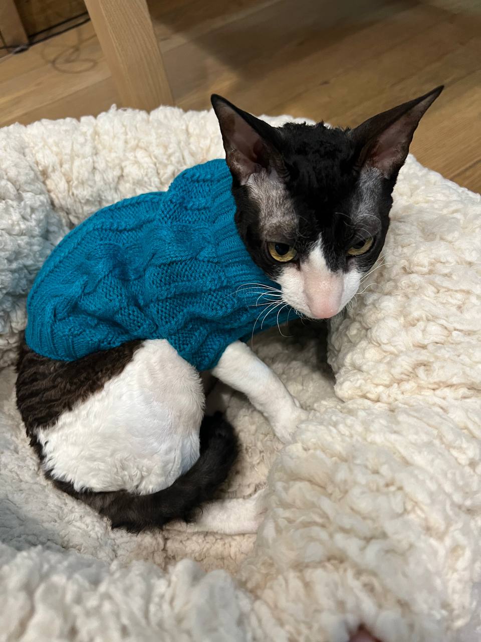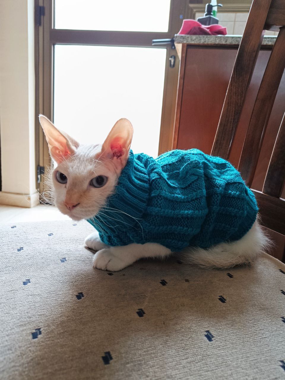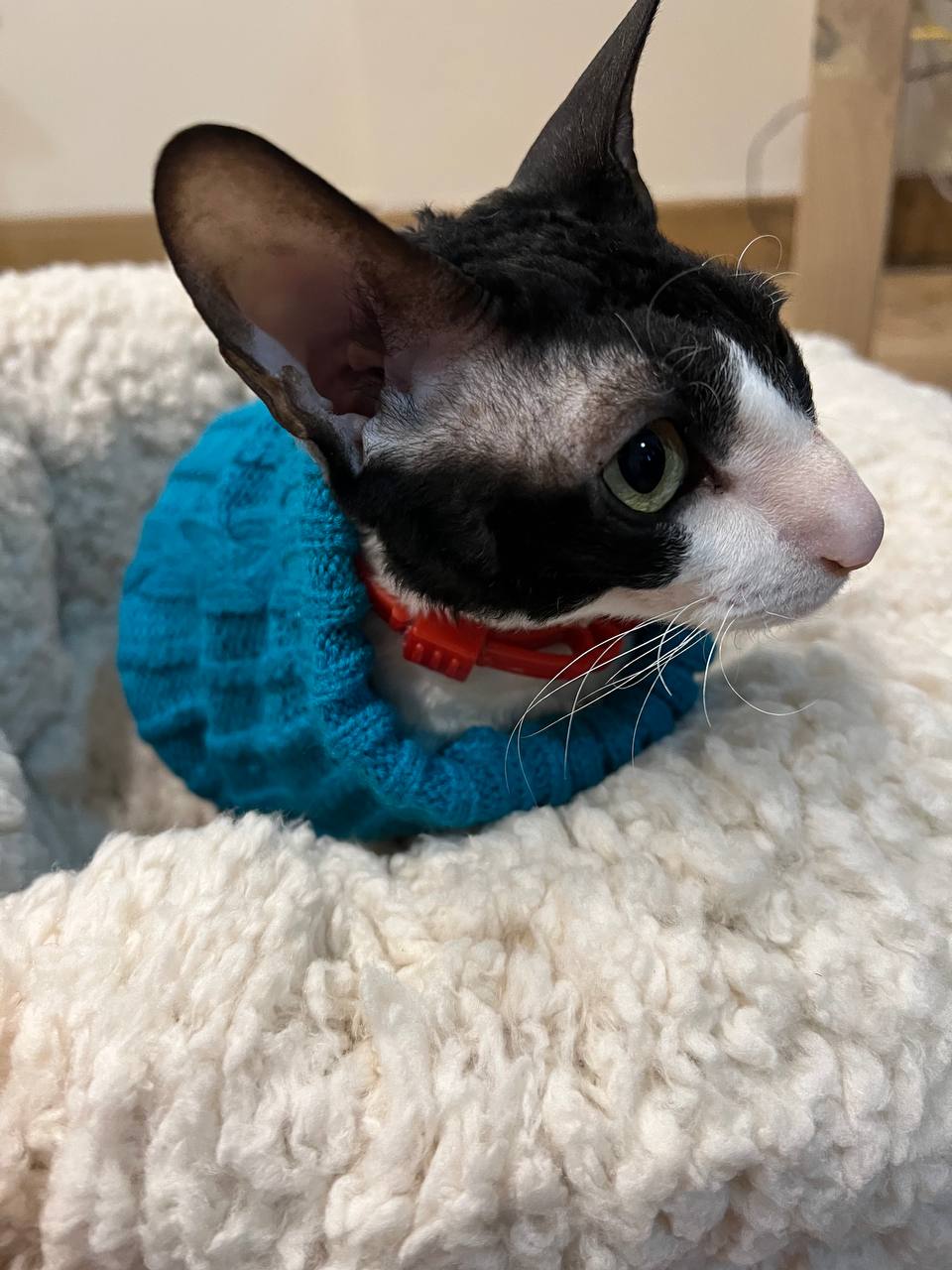 S вроде 25 взяли на сфинкса-недорослика нашу, сейчас пробно надели, смотрим. Кошка в шоке пока 😂