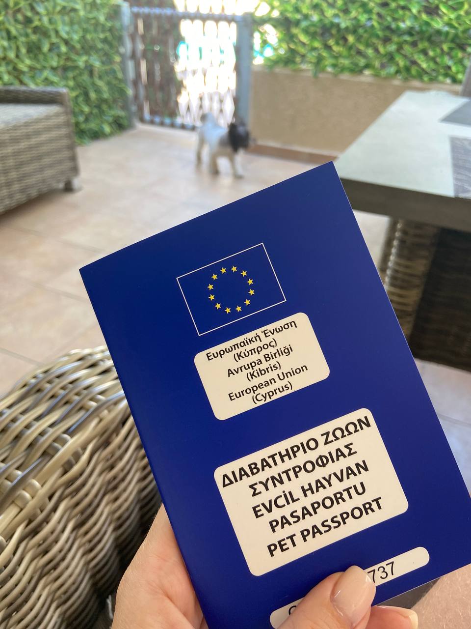 У меня собакен изначально из ЕС. Сменила ему паспорт предыдущей страны на Кипр. Точно такой-же синий - как был так и есть. То, о чем Вы говорите, возможно просто веткнижка животного. В некоторых клиниках такой предлагают. У моих котов такие были, у соба - нет.