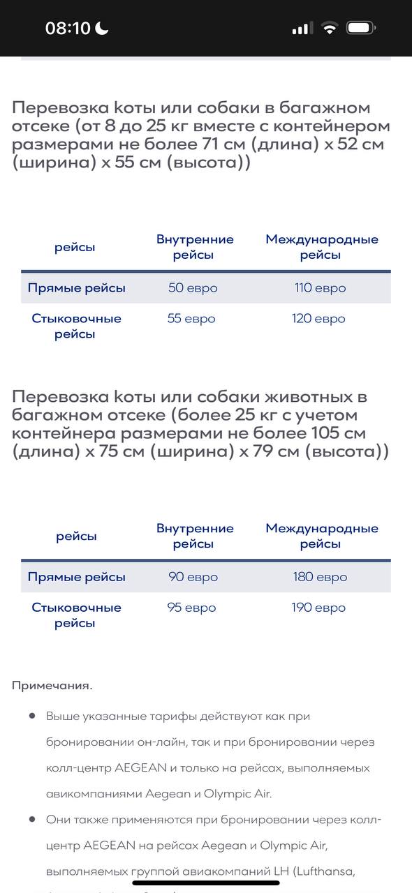 Мы везли в багажном отделении Aegean корги 15 кг + переноска, стоило 120 евро за два перелета (из Сербии через Афины на Кипр). У них фиксированная цена и не зависит от конкретного веса, как у Туркишей. Просто если тяжелее может быть немного дороже.