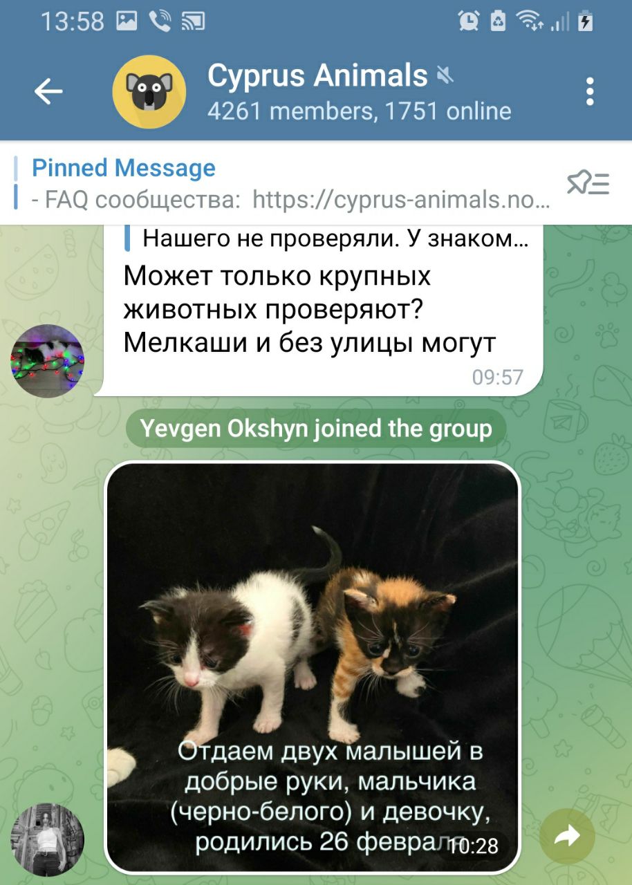 23/3 вчера выставляли котят. И еще ранее в чате, если поискать есть малыши котята.