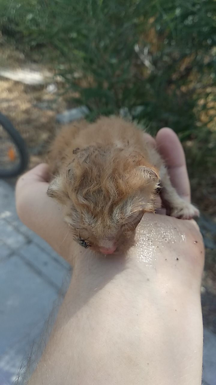Только что нашёл котенка на дороге. Он ещё слепой и кричит. Подскажите, что можно сделать. Я могу отнести его к ветеринару, но не могу оставить его