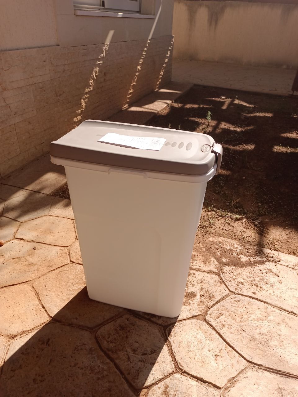 вдруг кому тоже надо — я-таки нашли контейнеры для корма в Лимассоле. 40 c чем-то литров, поместился пакет на 17кг корма. фирма Стефанпласт, у меня был точно такой же, очень удобный в использовании.