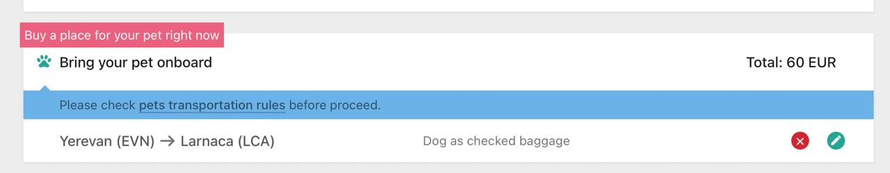 Я уже выбрал в багаж добавилось 60 евро к заказу, это скрин с уже выбранным пунктом