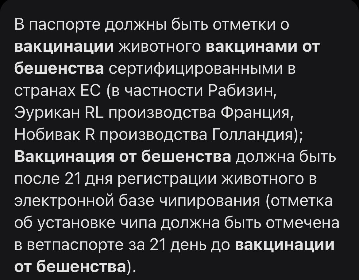 Добрый день! Бывалые ребята, подскажите, важен ли тип вакцины от бешенства, чей страны производства она? В инструкции в FAQ не написано, а ветеринар сказал, что российская не подходит.