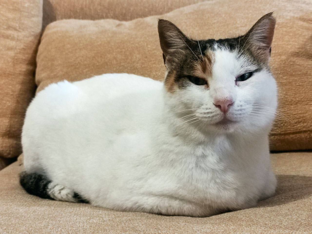 Мы сводили её к ветеринару, поставили первые дозы вакцин. Приучили к лотку. Кошка очень ласковая, всё время запрыгивает на колени, много спит и не хулиганит. Возраст — примерно 2-3 года. Еще немного есть следы прошлой уличной жизни (залысины и маленькая болячка)