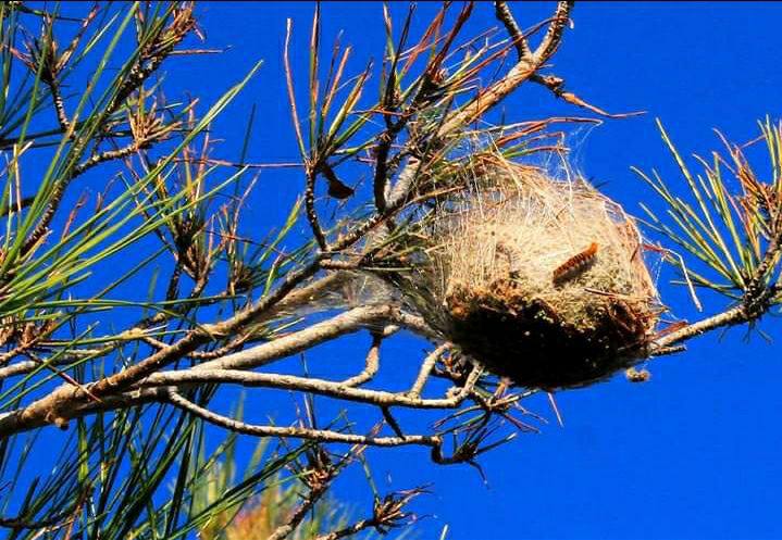 Хочу предупредить тех, кто на острове недавно. Уже начали выползать из гнезд гусеницы соснового походного шелкопряда.