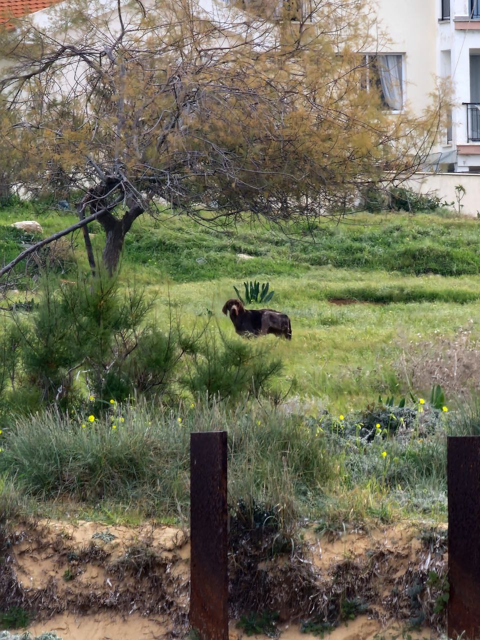 В Пафосе, в районе Lighthouse Beach несколько дней вижу собаку. По породе похожа на охотничьи. Варианты типо :пойнтер,курцхаар,французский брак(это я к примеру, в точной породе не разбираюсь). Ближе пока не получается сфотографировать. Пугливый, истащен :(