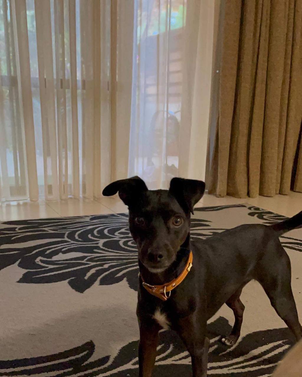 Индюша чипирована, прилетела с нами из Англии. На кулончике с обратной стороны мой номер телефона.