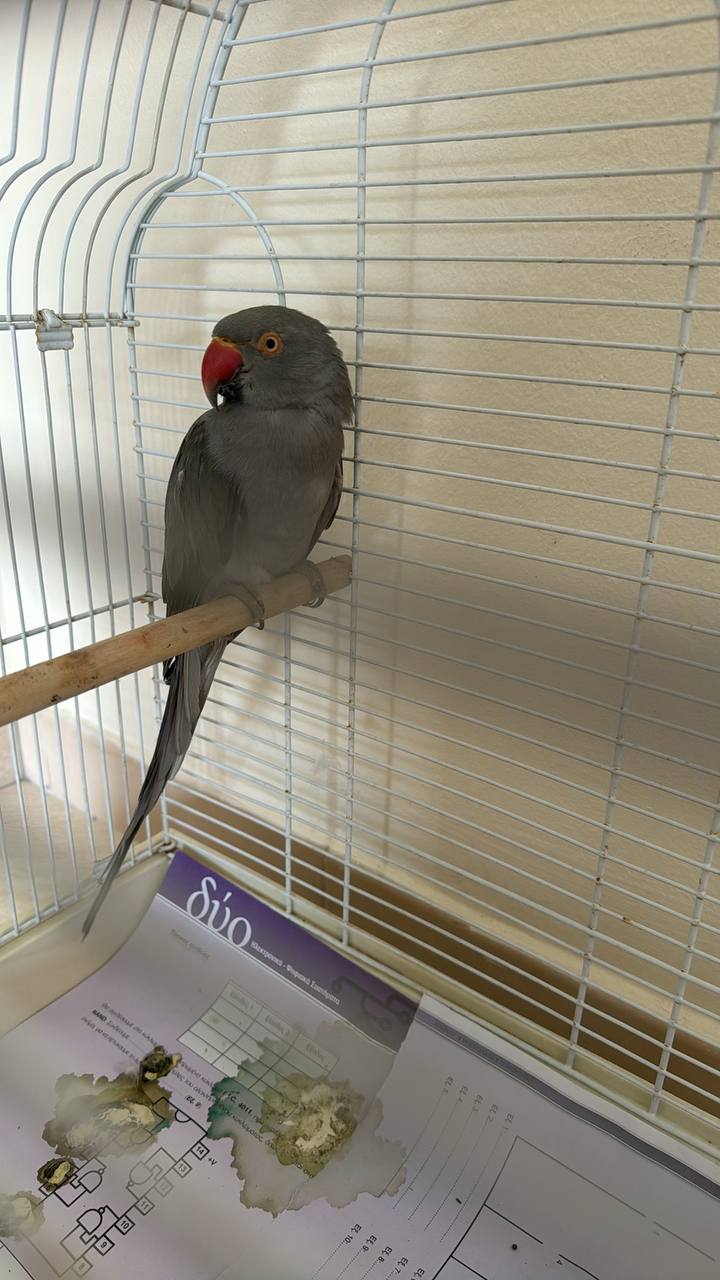 Доброе утро!! Найден попугай в районе Гермасогия ( Лимассол) у него есть кольцо отдам хозяину кто назовёт правильный код 🙏