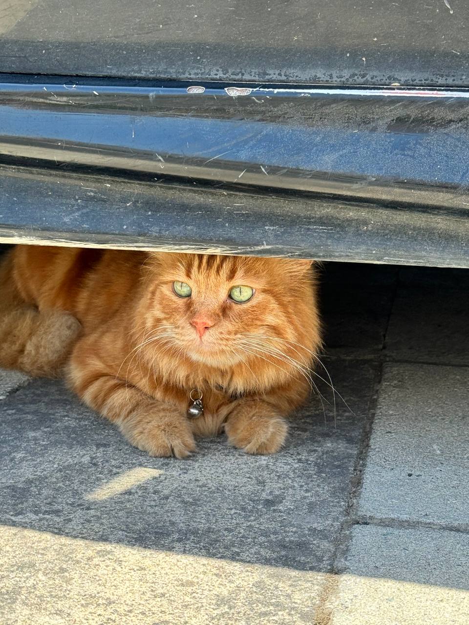 Вчера под капотом машины нашла этого малыша. Удалось его оттуда выманить, но он убежал на соседний участок, где мне удалось кормом его выманить только сегодня. Очень громко мяукал.
