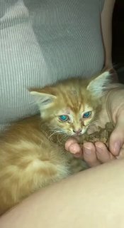 Удалось накормить и организовать коробку для ночевки. На руках согрелся, успокоился и почти заснул, так что есть уверенность, что приручить его получится быстро.