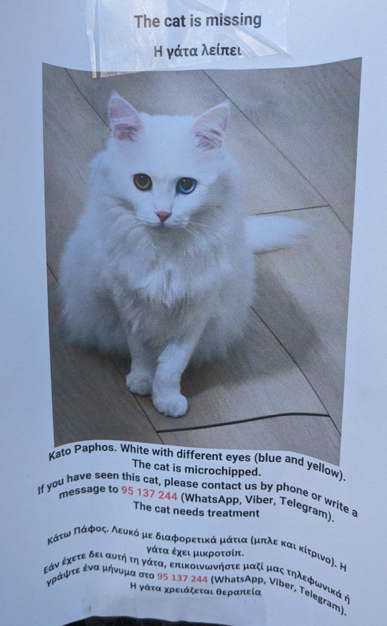добрый день! а есть в Лимассоле кто-то, кто может помочь отловить котика? даже с котоловкой ничего не получается, кот пугливый очень, сразу убегает 🥲