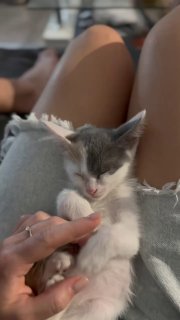 Нежная кошечка будет с вами спать, сидеть на руках каждую свободную минуту ведь она обожает людей. Из всех пристроенных котят эта самая ласковая! Она приучена к лотку, попадание 100 из 100. Кушает паштет для котят, обработана от блох и глистов. Сама себя развлекает, много играет, не кричит без повода. Сама покажет что хочет кушать. Хорошо контактирует с другими животными. Возраст около 2х месяцев. Она ждет вас 🩵🩵🩵.