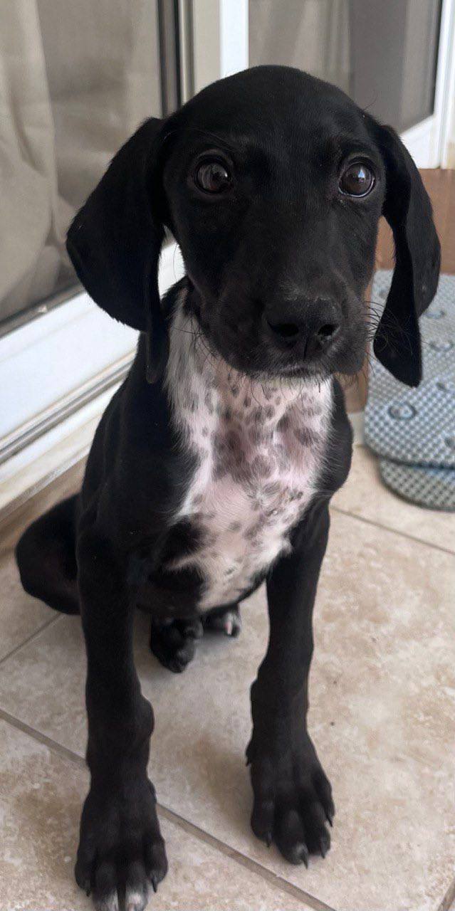 Не то чтобы я знаток охотничьих собак (всё больше по стаффам и булям), но это явно курцхар. На вид и по зубам 3-4 месяца, чипа нет, в Тсаде, где мы снимаем дом, никто не ищет.