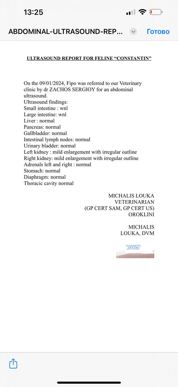 в нашем случае мы просто хотели для нашего основного лечащего врача получить от Михалиса описание узи (размеры органов, структура, эхогенность итп), посмотрите, чего мы смогли добиться спустя 2 недели!! каждодневных напоминаний