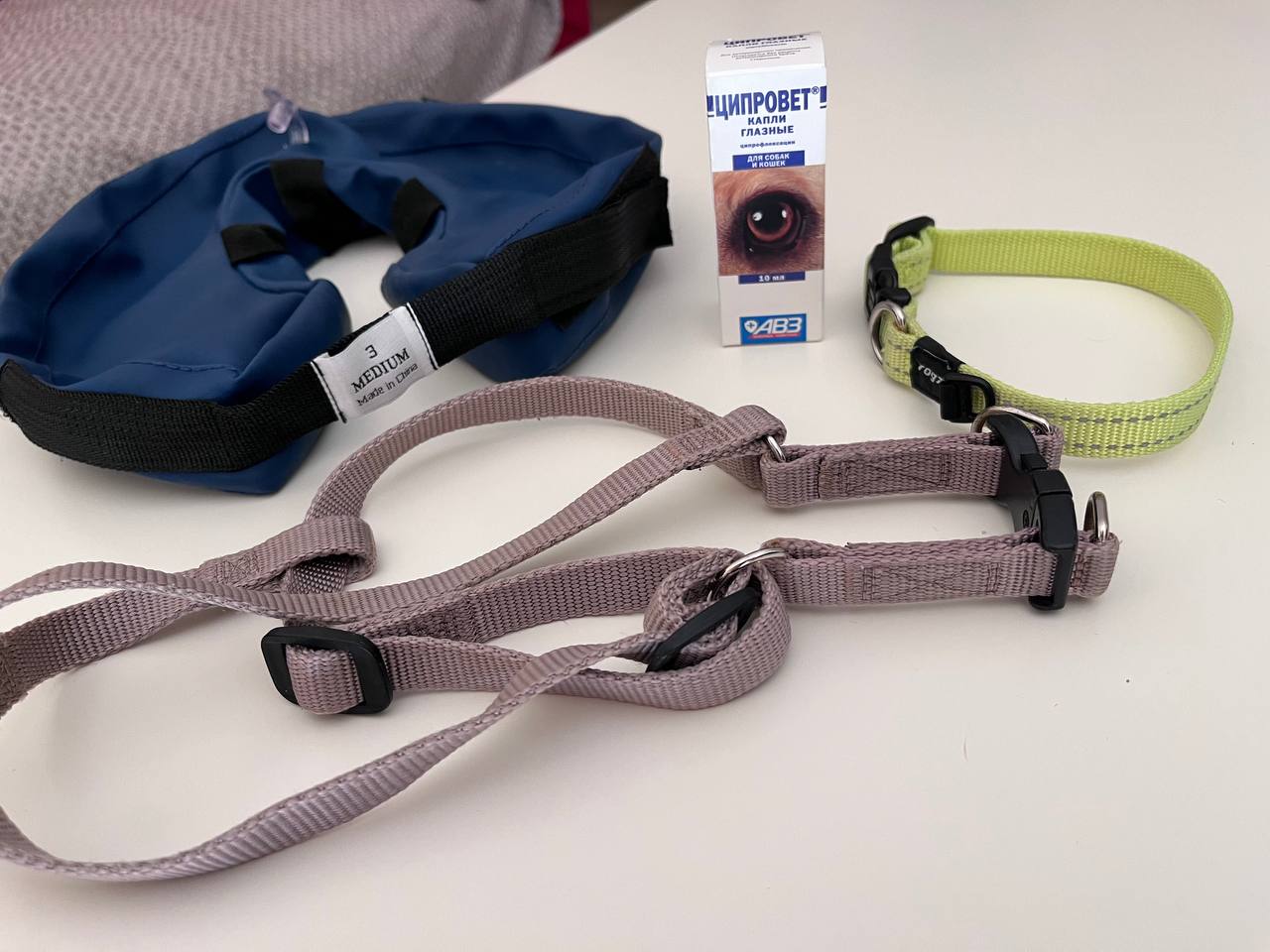 Надувной воротник 25-40 см, использовался один раз, чтоб глаз аллергичный не чесал.