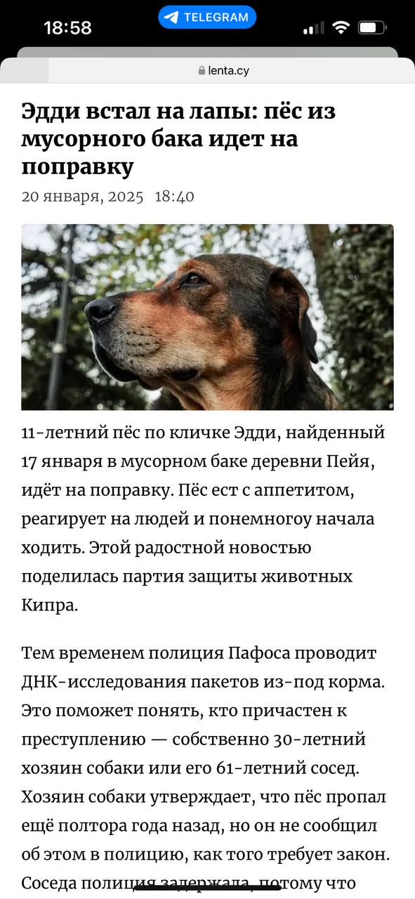Здравствуйте! Никому не попадались объявления о потерянной собаке в Лимассоле, в районе Агиос Николаос, Агиас Иринис, около склавенитиса? Среднего/большого размера, худенькая и с ошейником, но не проходит. По группам в фб не нашла