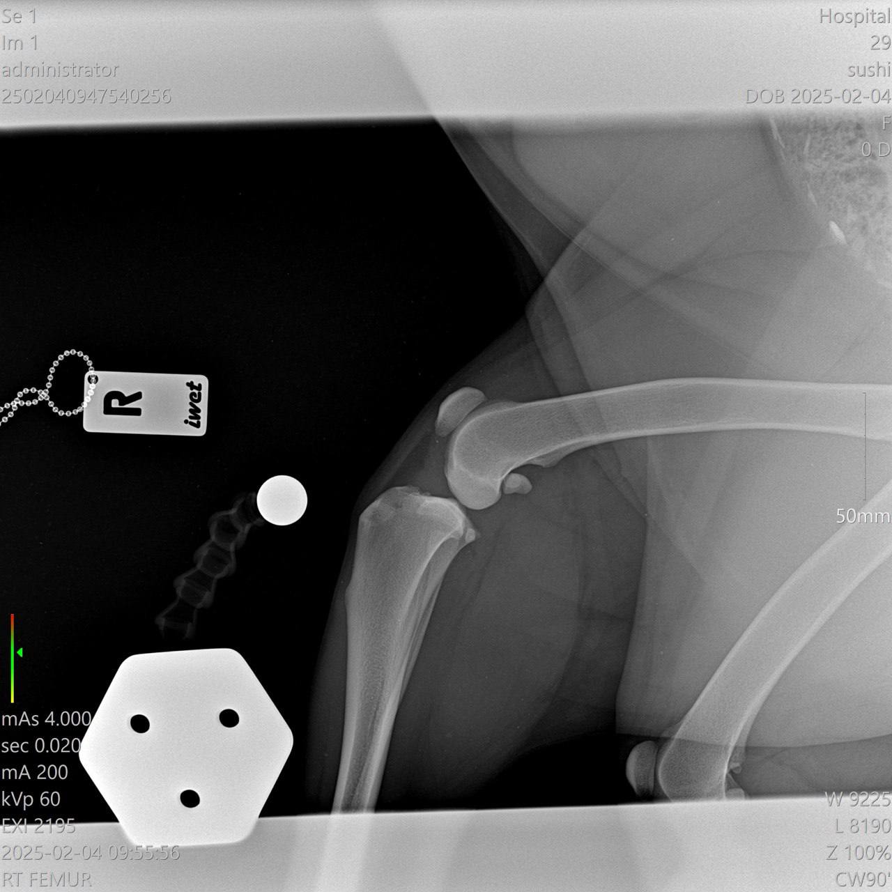 Всем привет! Нужна ваша коллективная помощь. Собака прыгнула на заднюю лапу неудачно и на нее не наступает. Сделали снимок, врач сказал надо делать операцию тк кость сломана. Кто нибудь видит сломанную кость на снимке ?