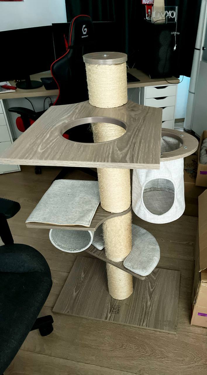 Продам домик-когтеточку для кота. Высота 130 см. Немного потрепанная котом снизу, но все еще в хорошем состоянии.