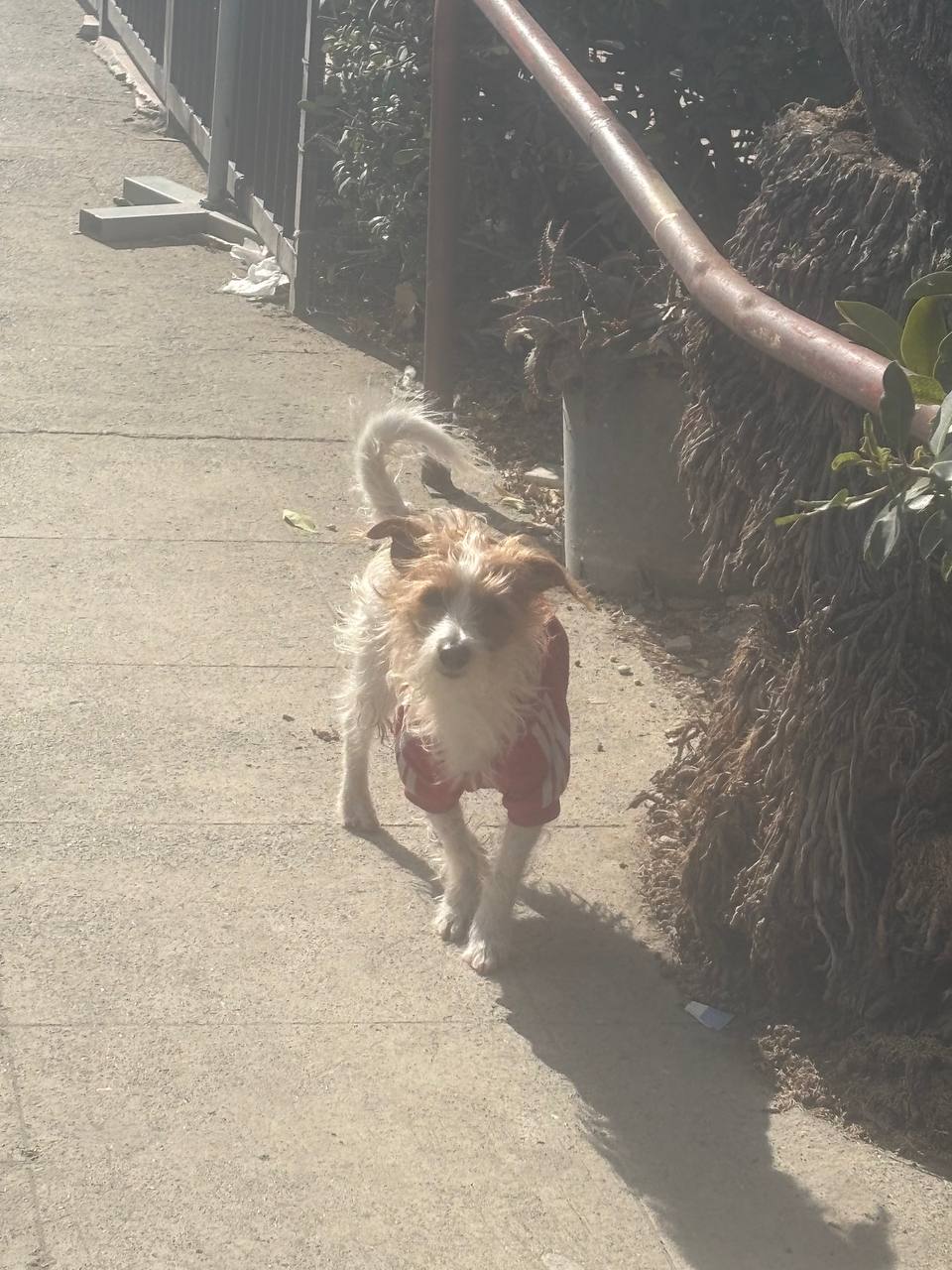 Бегает собака по району Христополитисса в Ларнаке, рядом с церковью Христополитисса. Мальчик, в красном костюме, очень напуган, номера телефона нет. Возможно, кто-то ищет