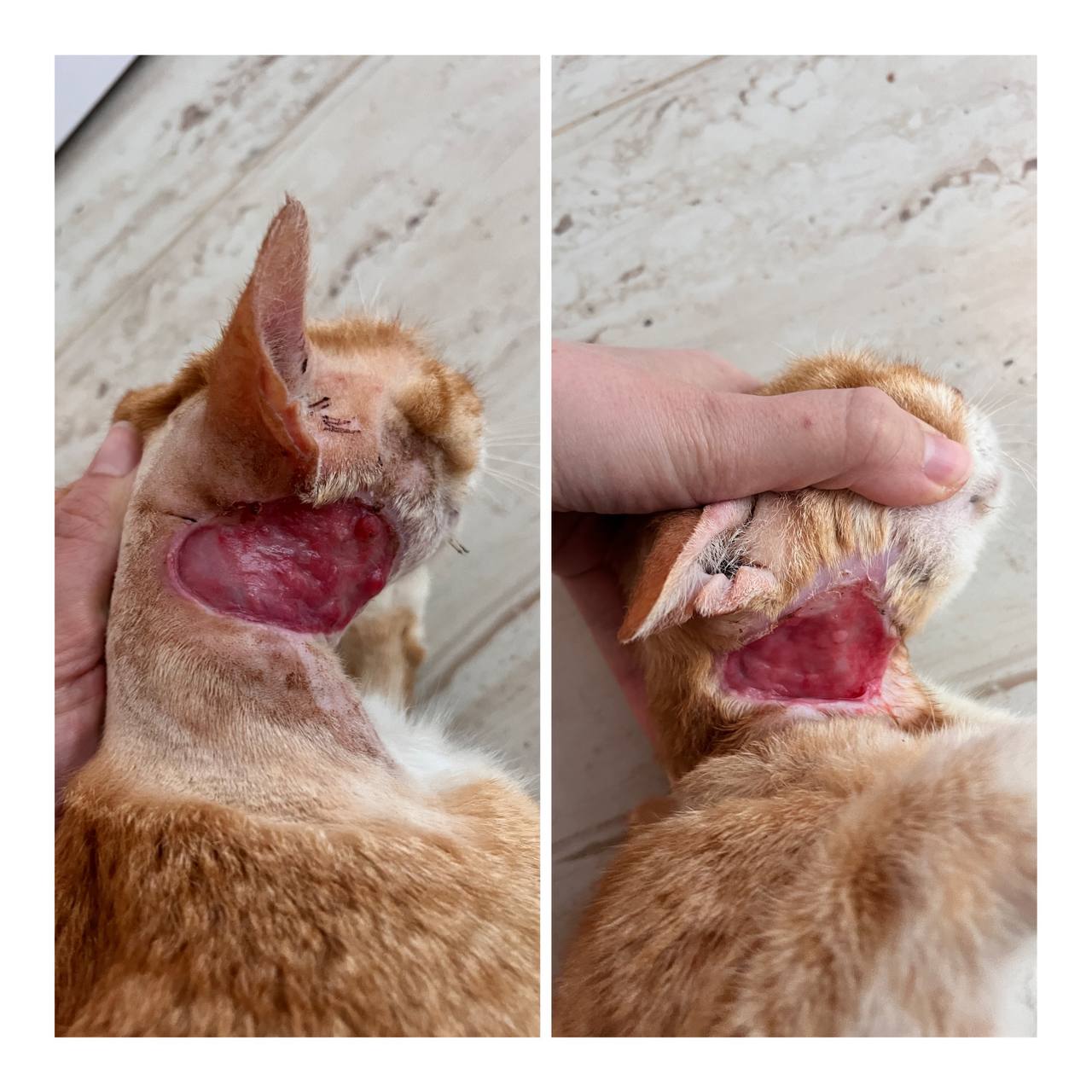 Добрый день, апдейт по рыжуле с раной на шее. Рану лечу уже больше месяца. Постепенно затягивается. Пролечила ей ушных клещей, уши чистые, но она продолжает чесаться так сильно, что появляются новые расчесы на шее и возле ушей((