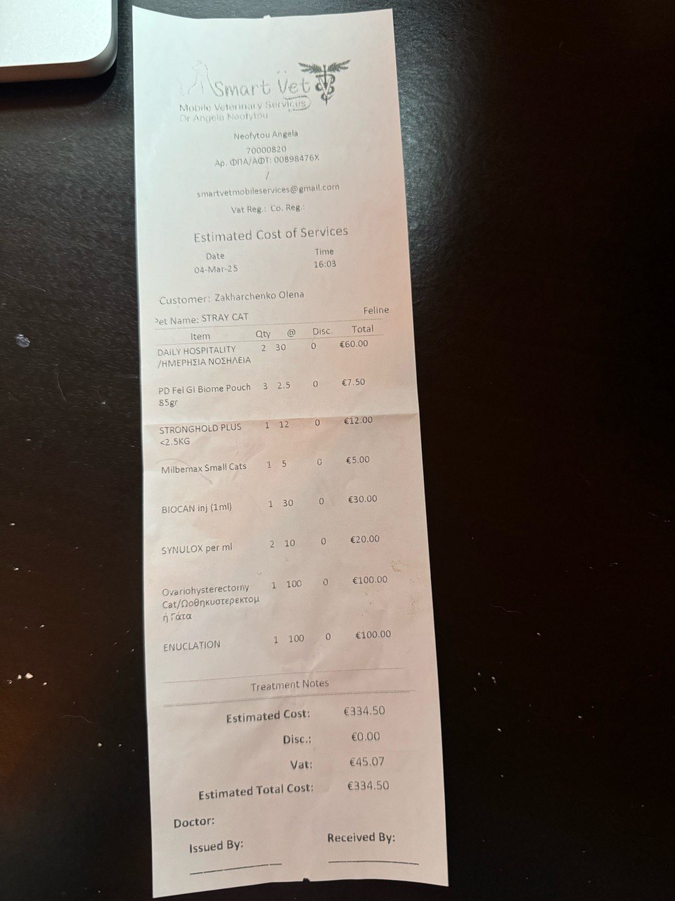 Привет всем! Я к вам с просьбой о помощи. Вот уже несколько лет наша семья подбирает, лечит и пристраивает кошек с улиц Лимассола. До этого момента мы справлялись сами, но сейчас у нас довольно трудный период. Я все равно подобрала эту кошку , с надеждой на ваше неравнодушие.