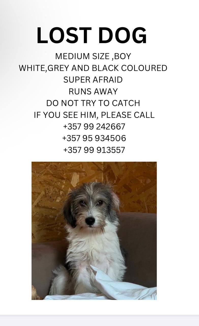 The puppy is shy, if found do not try to catch him by yourself, call the numbers from the announcement