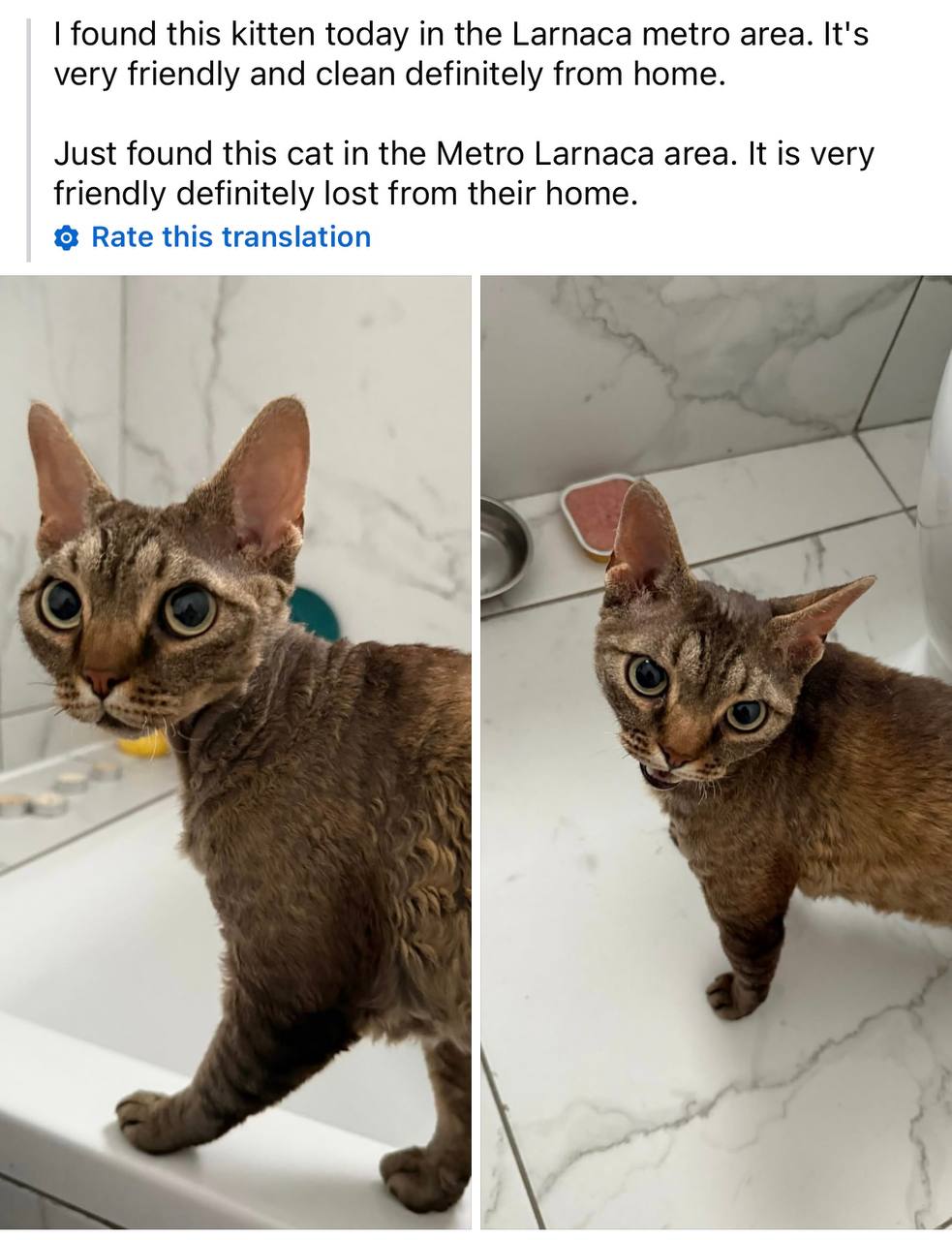 Никто не терял Девон Рекса? Микрочипа нет. Найден сегодня около магазина Метро в Ларнаке. Хозяева отзовитесь!