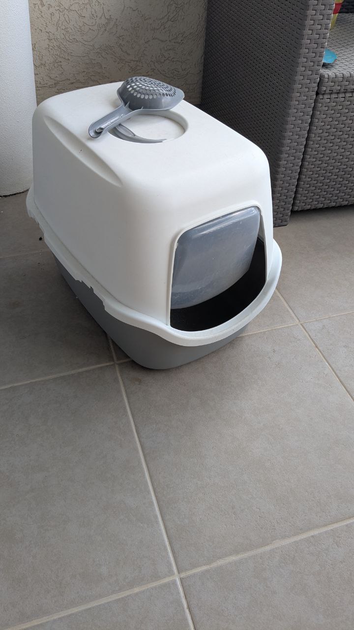 Отдам кошачий лоток. У него сломаны крепления между низом и крышкой, поэтому пользоваться можно, а поднимать за ручку - нет