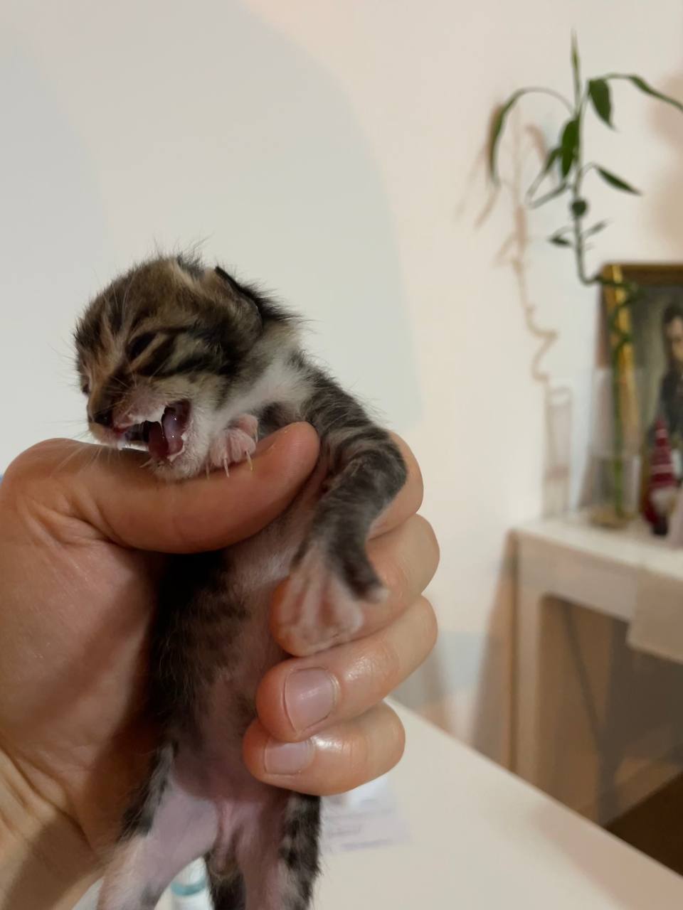 Сейчас ему около 10–12 дней. Мы кормим его смесью и стараемся поддерживать тепло, но, к сожалению, не можем оставить его себе — вскоре уезжаем с Кипра.