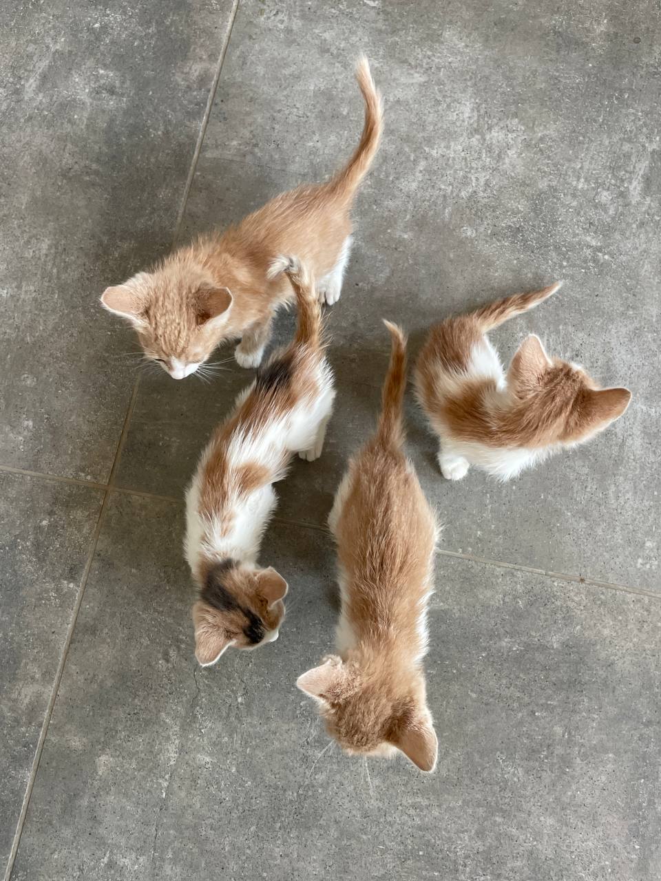Ребята родились прямо у нас во дворе. Их было пятеро, но, к сожалению, один малыш не выжил… Мы нашли их в очень плохом состоянии — обезвоженные, ослабленные. Срочно отвезли в ветклинику, где им оказали всю необходимую помощь. Сейчас котята идут на поправку, набирают вес и радуются жизни. Им около 1,5 месяцев.