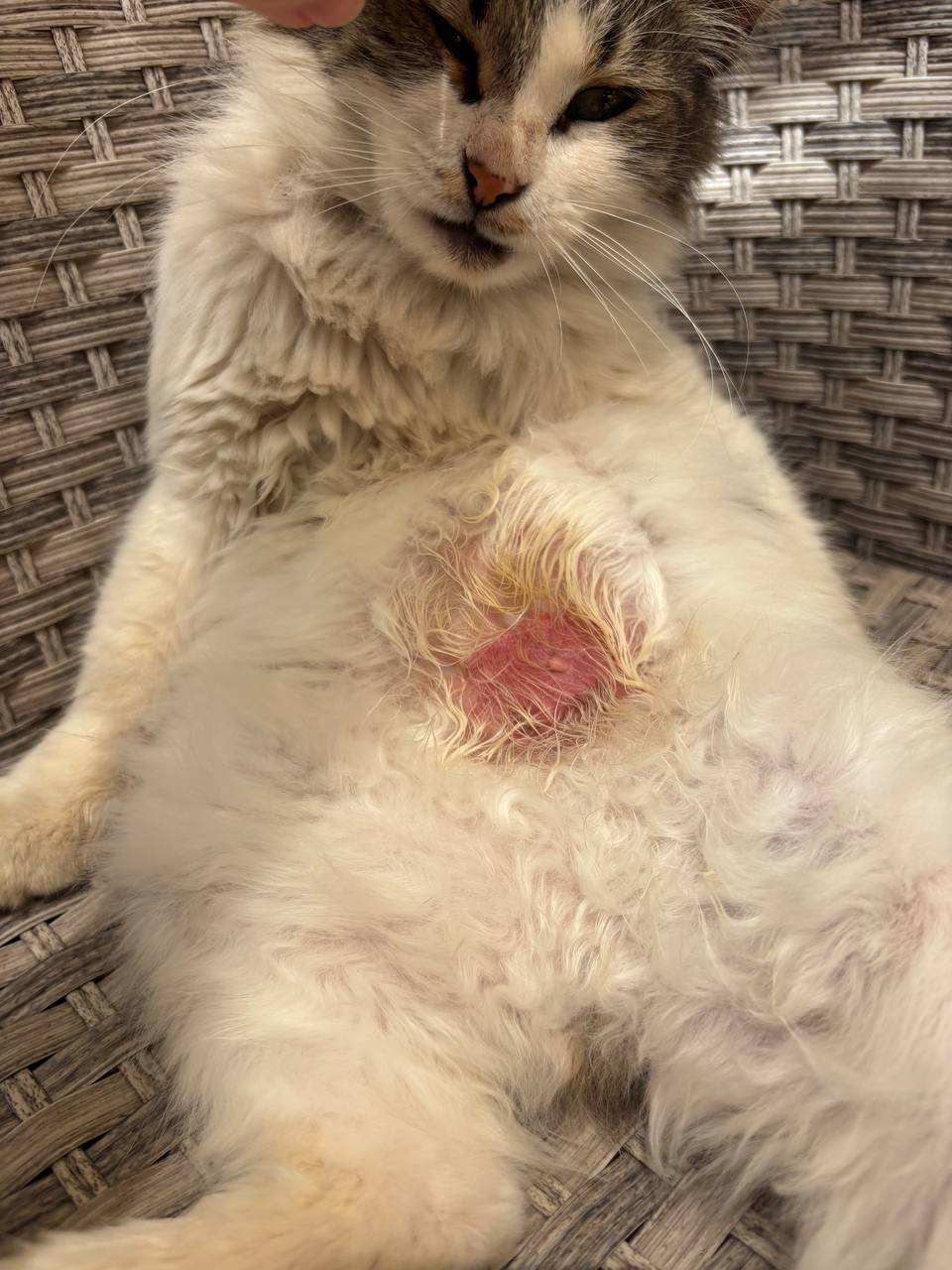 Всем привет! Уличный котик приходит посидеть на веранду и заметила, что у него на животике что-то странное, как будто опух сосок. Постоянно вылизывает это место. Судя по ушку, стерелизованный. Кто-нибудь может подсказать что это и как можно помочь котику?