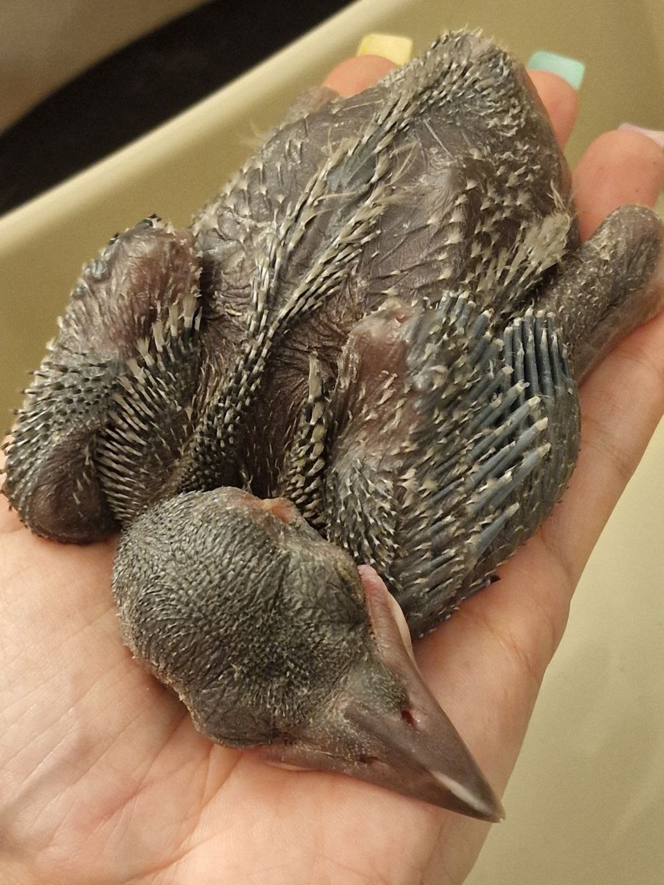 Ситуация- вчера нашли птенца, совсем кроха, без перьев ещё, выпал из гнезда видимо. Понаблюдали, рядом птиц никаких не летало, забирать его или кормить никто не собирался.. забрали домой в итоге, отогрели, напоили
