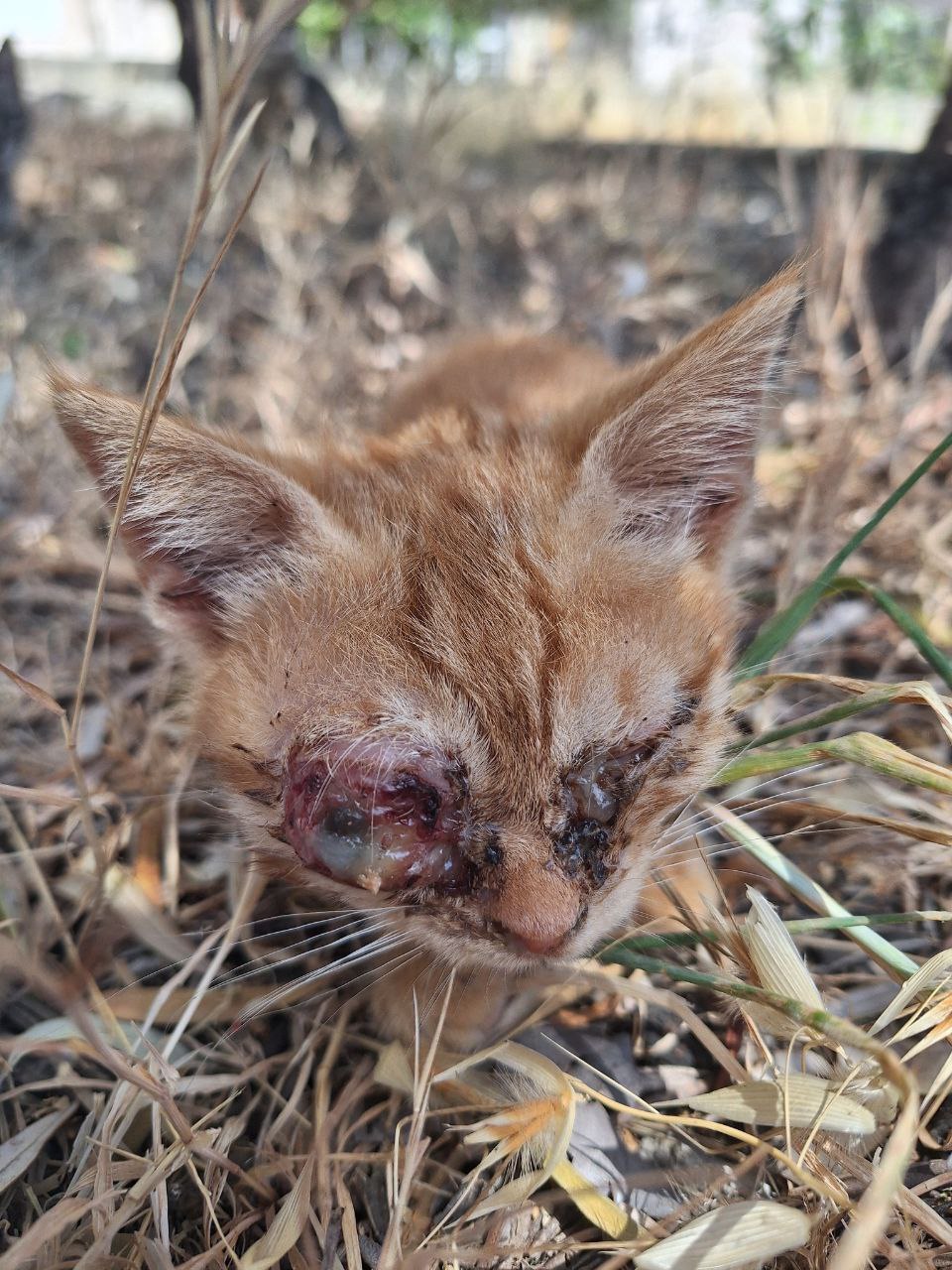 На улице котёнок, глазки в ужасном состоянии, подскажите, чем можно срочно промыть их?, пока не доеду до врача