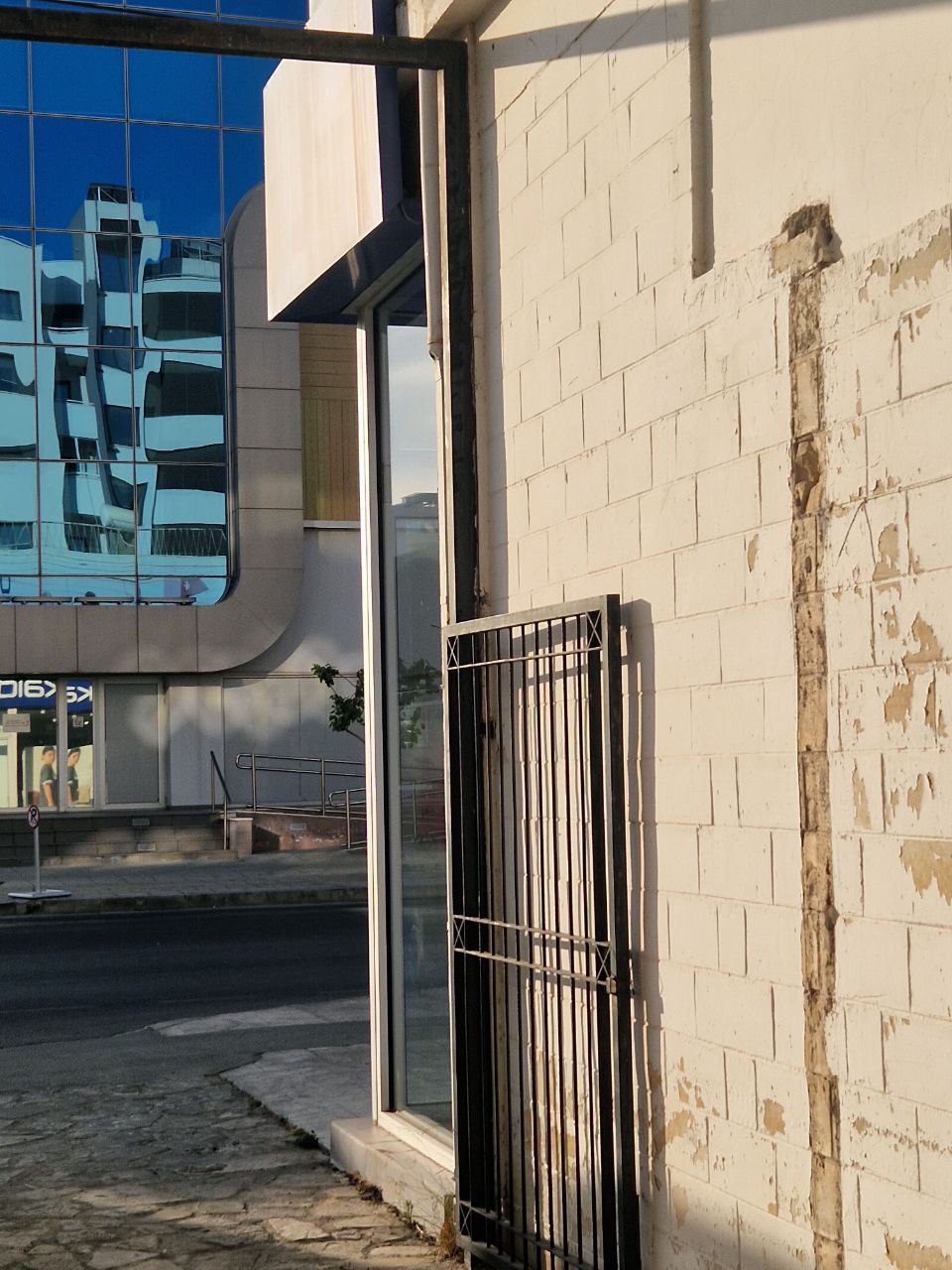 На фото угол вывески, но она ещё идёт как бы направо над всем зданием и выход только один на фото