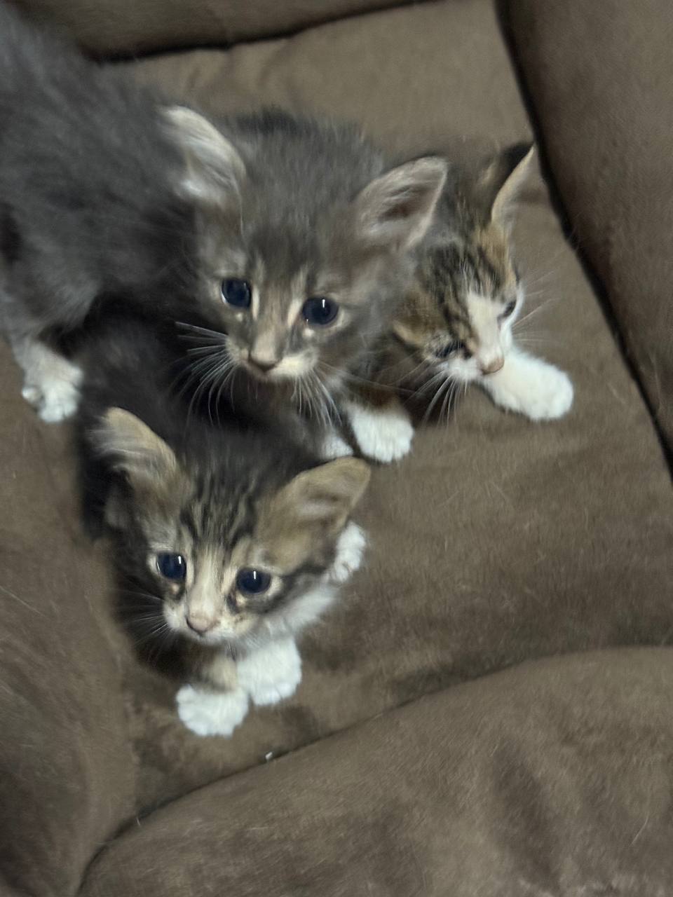 Найденыш из Гермасойи, которая отбилась от мамы и в 3 недели оказалась в компании котят-подростков без кормящей мамы.