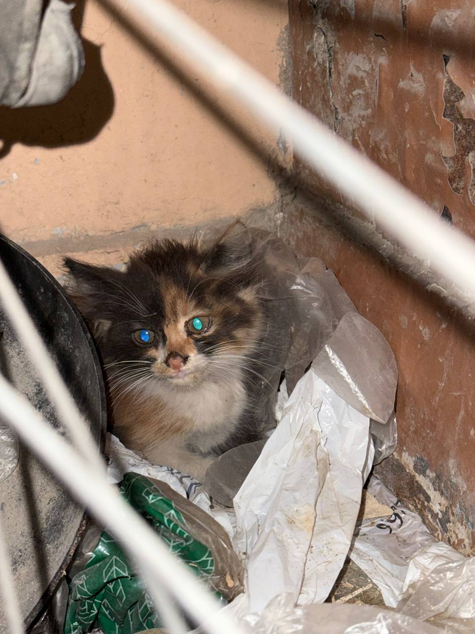 Неподалёку от дома остался котёнок - кошка перестала к ней приходить, а 4 других пропали. Котёнок плачет днём и вечером. Мы её подкармливаем, но, к сожалению, взять себе не можем - у нас уже есть котёнок, которому ищем дом и своя кошка.