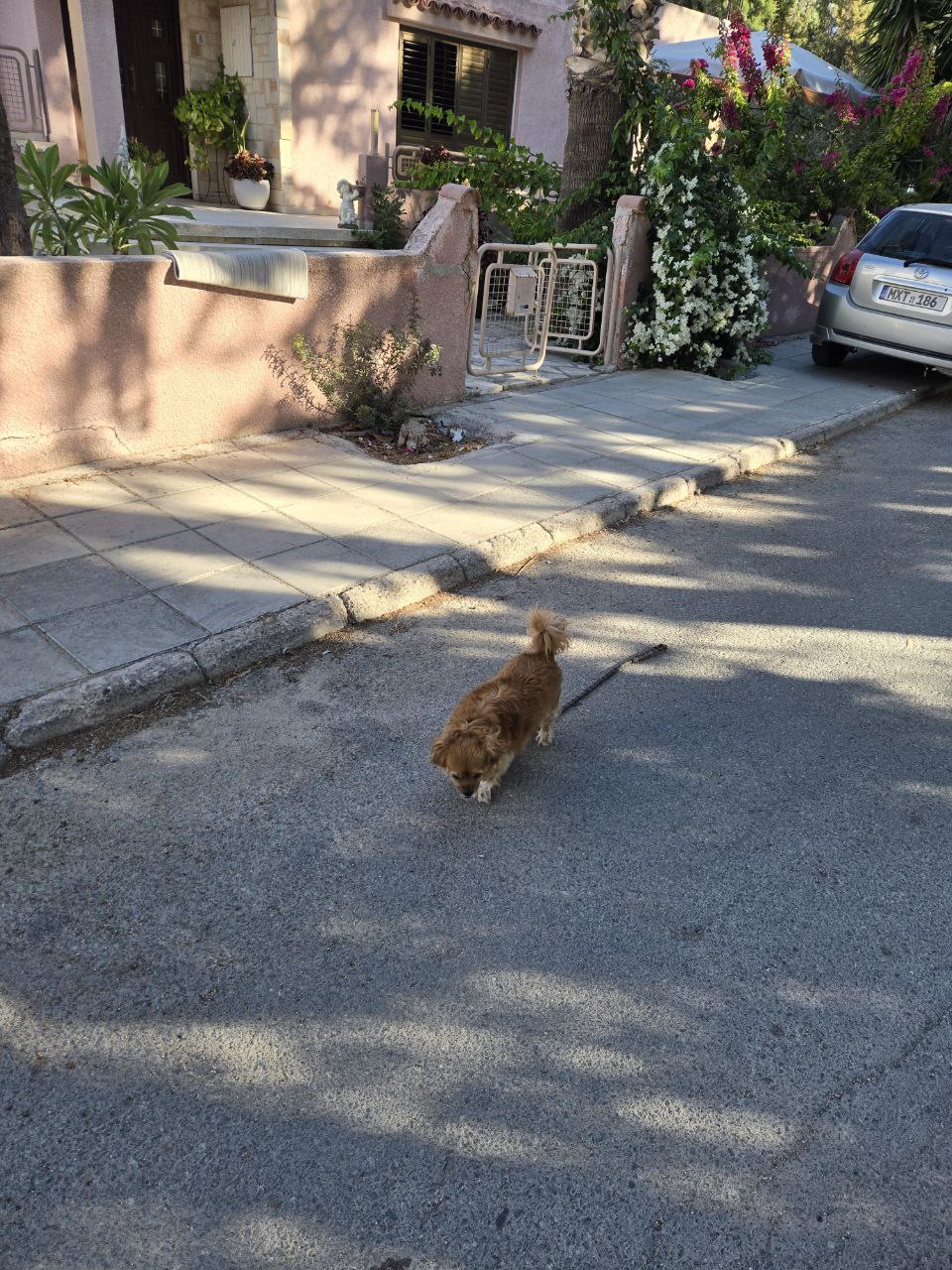 Здравствуйте! Второй день бегает в Alana sports center, Пафос, Героскипу. Без ошейника, шерсть красивая, не похож на бездомного. С людьми общается, с детьми играет. Может, кто узнает.